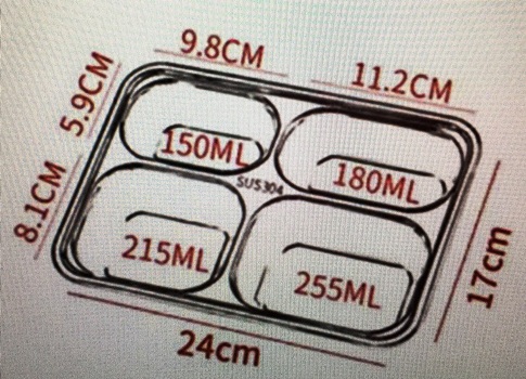 品名: 不鏽鋼環保攜帶式小四格餐盤 編號: D003 財煦公司_專業生產 不鏽鋼餐盤,工廠嚴選100%食品級不鏽鋼品質,